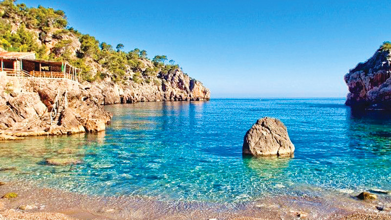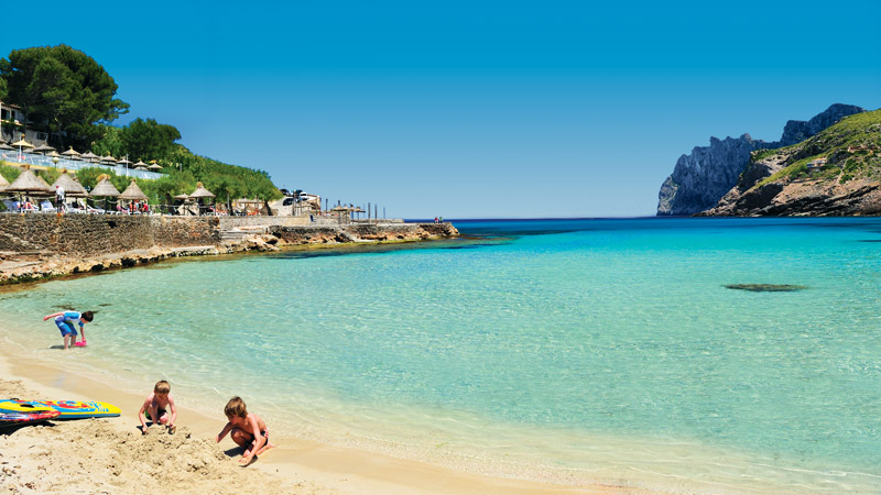 From this unspoilt half-moon of shingle, overlooked by Puig Major, the water is exceptionally clear and, due to its remote location, there’s plenty of space even in high season.