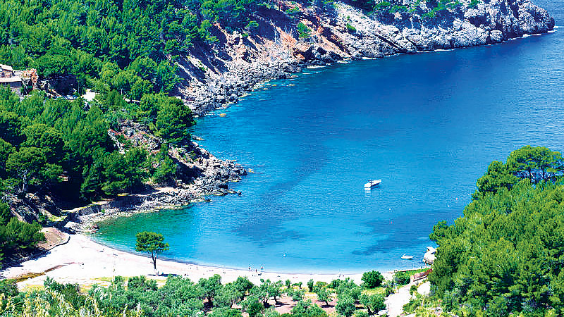 A 25-minute drive from Valldemossa. Parking is limited near the beach and fees apply – you might prefer to leave your car in Deià and walk down the steep path.