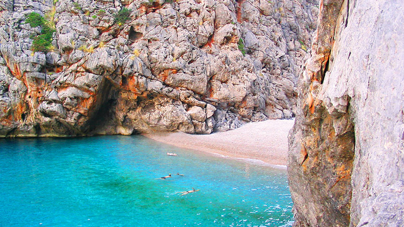 Accessible by boat from Puerto Sóller or an hour by car from Sóller, along the Lluc mountain road and on the left just before Sa Calobra.