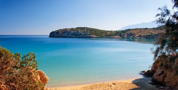 Opposite the Spinalonga Peninsula is a small islet where you’ll find this unspoilt sandy beach – the local’s choice – in a rugged natural setting.