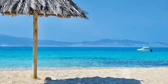 The town’s main beach is a Blue Flag 200m-stretch of golden sand, with good facilities, a choice of waterfront tavernas nearby and a watersports school for an effortless day by the sea.