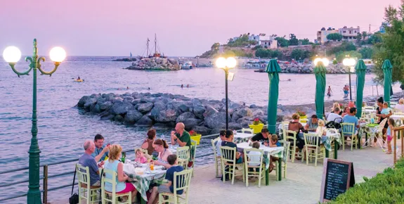 Traditional Plaka has a host of excellent fish tavernas, the best known lined up along the tiled seafront road and down on the beach, the waves almost at your feet, with spectacular views of Spinalonga. Alternatively, be tempted by attractive Mochlos, which has its own esteemed handful of fish tavernas overlooking a Minoan site.