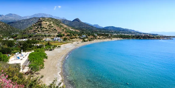Within easy walking distance of Istron village with its cafés and restaurants, this beach is a 20-minute drive south east of Agios Nikolaos.