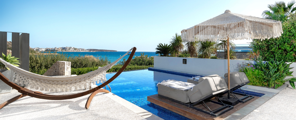 Sourcing a new property to truly match the exceptional standards and guest appeal of our established Simpson Hotel collection is never easy and yet, when the right place presents, the decision couldn’t be simpler. In a stunning position overlooking glorious Almyros Beach, just 2km from the centre of upmarket Agios Nikolaos, the moment we saw The Sand Suites we knew it was an absolute gem.