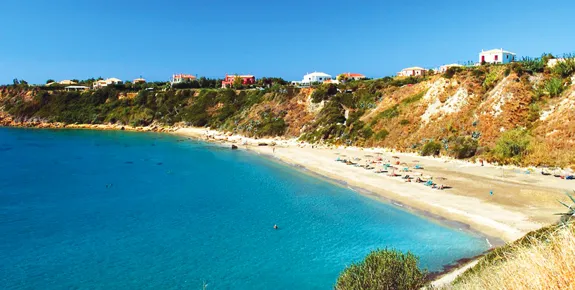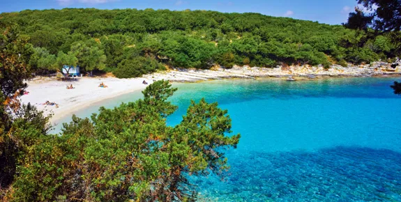 Surrounded by hills, the clear waters of this lovely white pebble beach, as seen in Captain Corelli’s Mandolin, are ideal for snorkelling. There are also beach bars, sunbeds and watersports on offer.