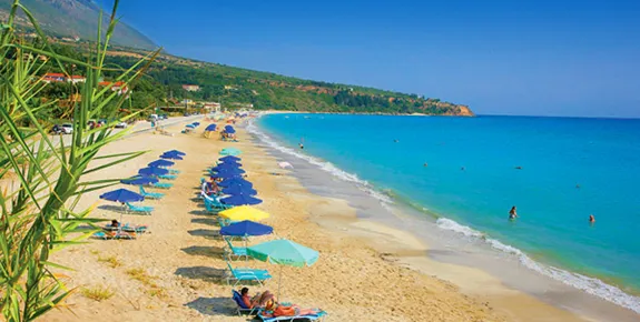 The beach is about 20 minutes drive from Argostoli, and within walking distance of most of our Trapezaki area villas.