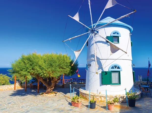 Perched atop Mount Skopos sits the recently renovated monastery of Panagia Skopiotissa. This important historical treasure offers sweeping views of the island’s lush green beauty all around. But be warned; the twisting, turning road up to the top comes with sharp bends and steep drops: certainly one that’s best enjoyed on foot.