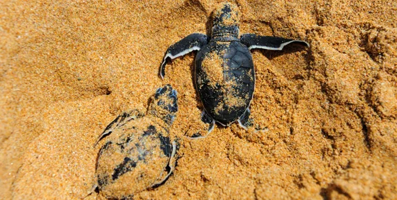 Encourage a turtle into the sea